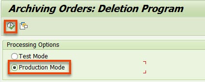 - Jalankan program RIARCORVS dan masukkan Order No. (bisa lebih dari 1), program ini akan melakukan Set deletion flag and deletion indicator ke seluruh order yang dipilih