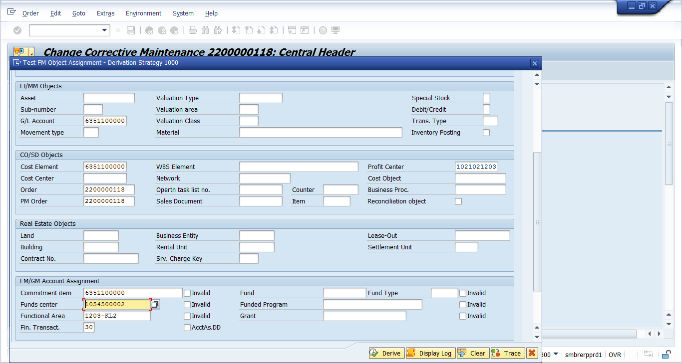 Ketika modul FM di aktifkan dalam suatu implementasi, Funds Center dapat di mappingkan dengan Cost Center untuk kebutuhan Maintenance Order. Setelah dilakukan mapping dan setting terkait FM, maka dari sisi PM bisa melakukan testing, apakah Funds Center yang di assignkan dengan Cost Center, sudah sesuai? Karena pada Maintenance Order, jika kita telah mengisi kode Cost Center pada tab Location, pemilihan Funds Center yang akan digunakan oleh order tersebut, tergantung mapping dari sisi FM, sebagai contoh adalah mapping antara Funds Center dan Cost Center. Berikut ini adalah cara untuk memastikan bahwa Maintenance Order akan terassign pada Funds Center yang sudah sesuai.