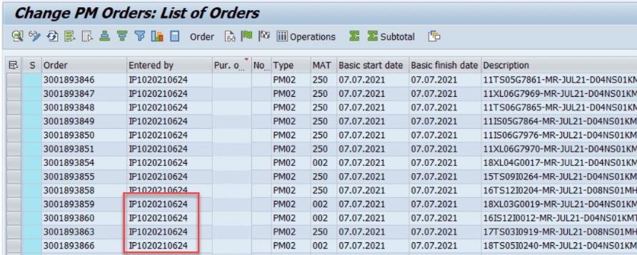 Mengapa ada user id seperti ini? Siapakah IP10xxxxxxxx ini yang dapat mengenerate preventive maintenance order?
