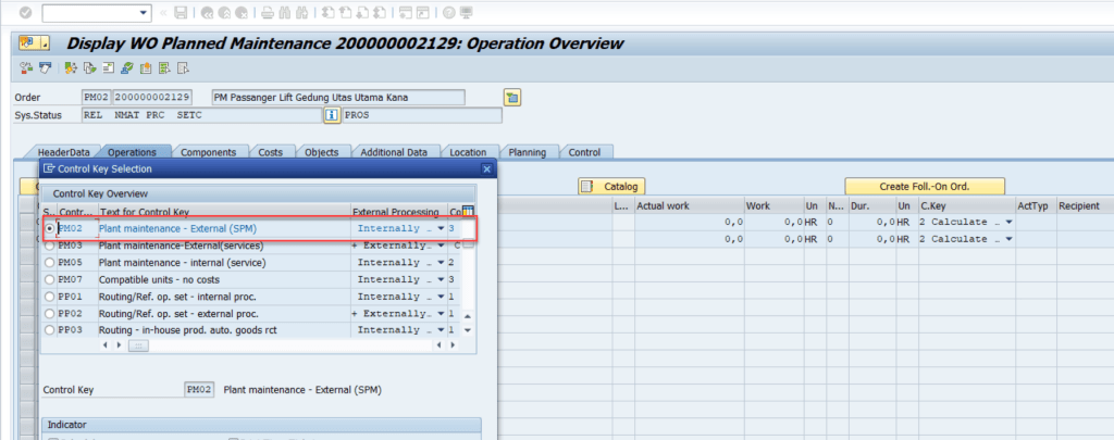 Dan kemudian kita perlu cross check kembali di sisi konfigurasi, apakah control key yang dipilih, mengijinkan konfirmasi dapat dilakukan atau tidak. Sebagai contoh, untuk control key PM02 ini ternyata di setting Confirmation (3) – Confirmation not possible.