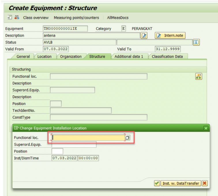 Setelah konfigurasi ini dilakukan, maka field Functional Location sudah bisa di edit