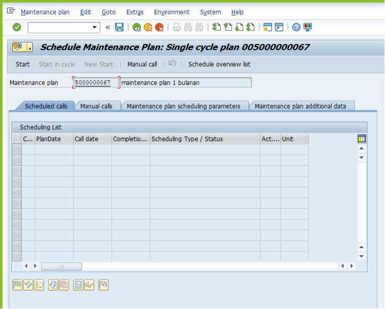- Maintenance plan yang di call melalui IP30 tidak dapat tercatat pada list schedulling IP10, sehingga seakan-akan belum di lakukan schedulling