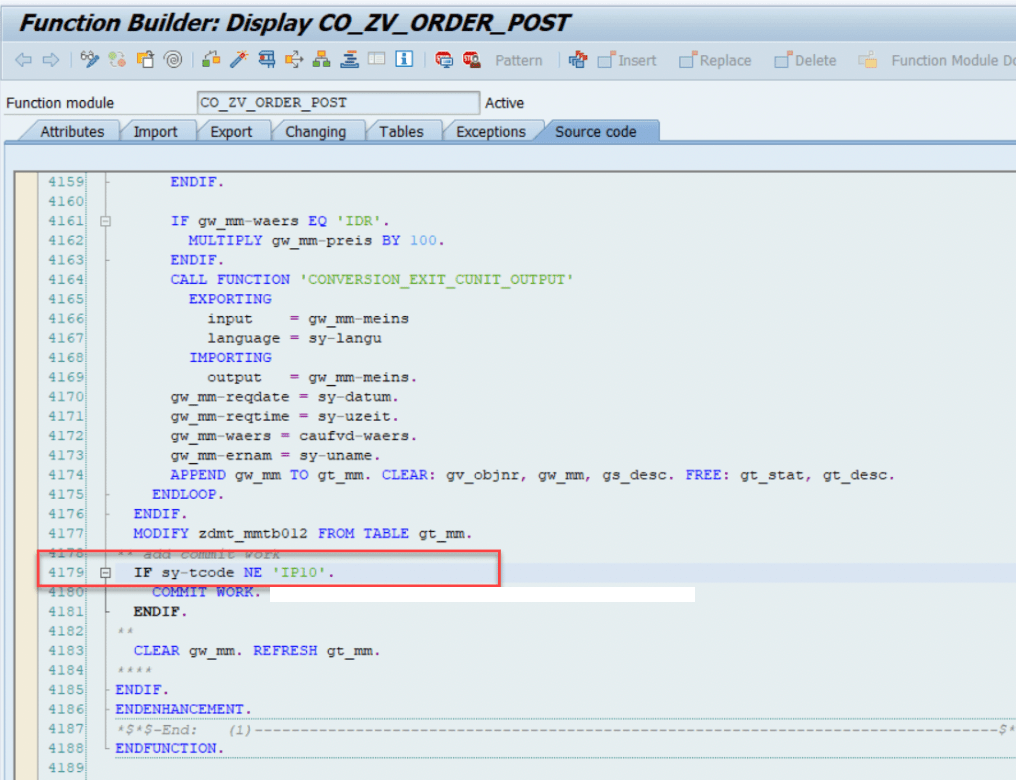 Sehingga dari kondisi tersebut, solusi yang bisa dilakukan adalah dengan melakukan exclude tcode IP10 pada COMMIT WORK pada enhancement tsb (NE ‘IP10’).