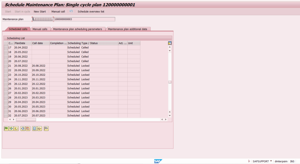 Check Maintenance Plan tersebut pada IP10. Setelah dilakukan Deactive Maintenance Plan, maka Schedulling status pada IP10 akan berubah menjadi “Locked”. Dimana kondisi ini yang akan membuat system menolak untuk memproses maintenance plan untuk ter call schedule nya / terbentuk maintenance order preventive.