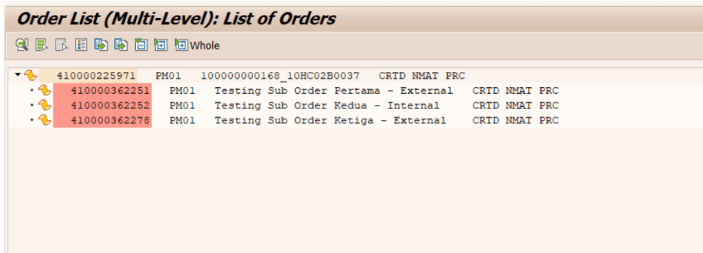 Setelah dilakukan create sub orders, kita bisa melakukan analisa / hierarchy dari Superior order dan seluruh sub order nya dengan view Multi Level.