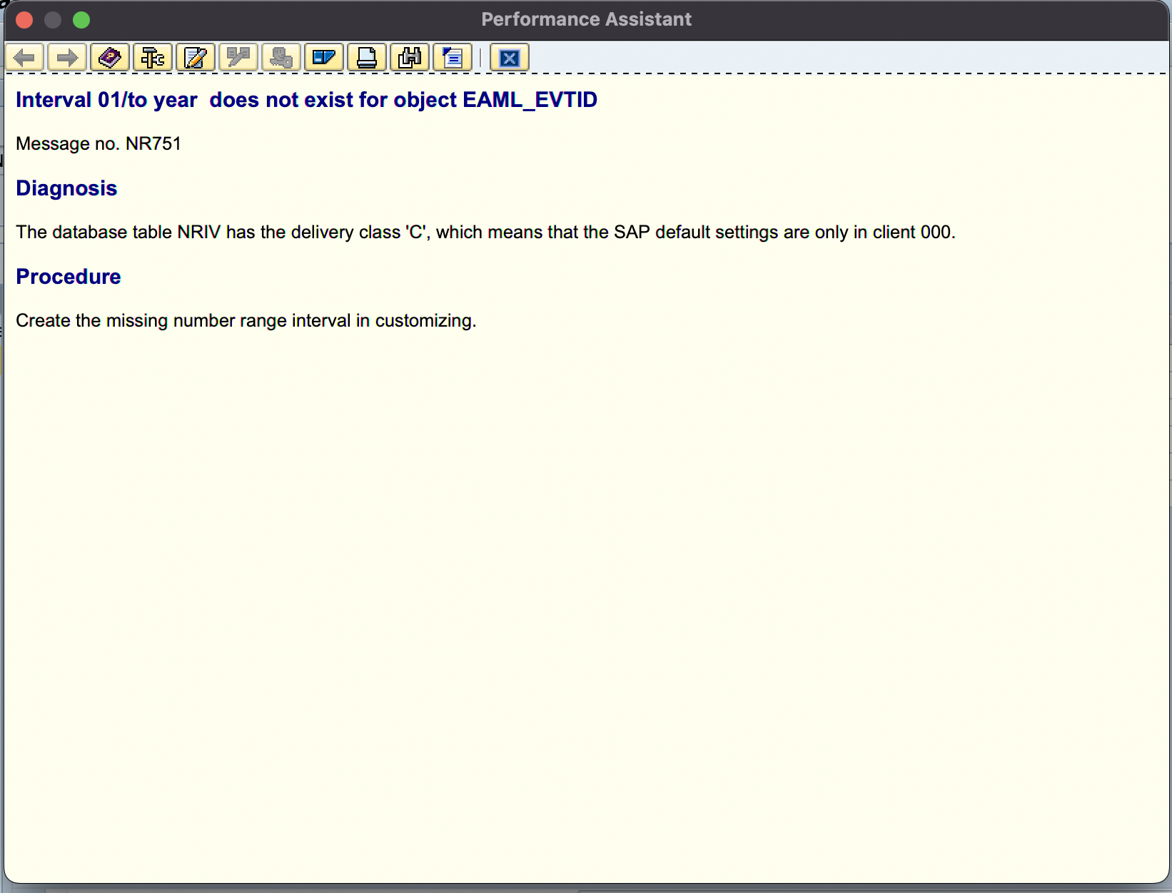 Jika kita mencoba melakukan sebuah transaksi untuk pertama kali nya kemudian muncul error “Interval 01/to year does not exist for object EAML_EVTID” , apa yang harus dilakukan?