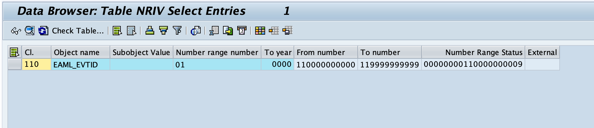 The database table NRIV has the delivery class ‘C’, which means that the SAP default settings are only in client 000.