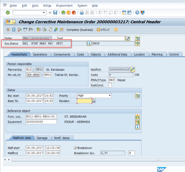 Berikut penjelasan mengenai system status yang ada di dalam suatu maintenance order. CRTD MANC : Maintenance order yang mempunyai status seperti ini artinya order tersebut baru saja dibuat dan belum direlease dan didalamnya terdapat komponen yang dibutuhkan untuk order tersebut tetapi stocknya tidak dimaintain availability nya (MANC) REL MANC NMAT SETC : Maintenance order yang mempunyai status... Continue Reading →